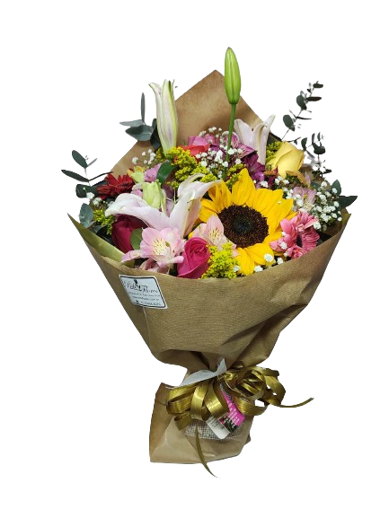 Composição: O Buquê Misto II é uma verdadeira obra de arte floral! Com 15 galhos de flores encantadoras, incluindo Lirios, Gerberas, Rosas, Astromélias, Boca de Leão, Caspias, Lisianto e folhagens exuberantes, tudo embalado com carinho em papel Craft e um laço de fitas que dá aquele toque especial!