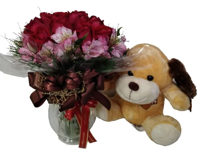 Composição: O nosso Arranjo de Rosas e Astromélias é a escolha perfeita para quem quer encantar! Com 10 rosas importadas e 10 astromélias, tudo isso acompanhado por um lindo vaso de vidro, uma pelúcia fofinha e um laço charmoso, esse presente é pura emoção!