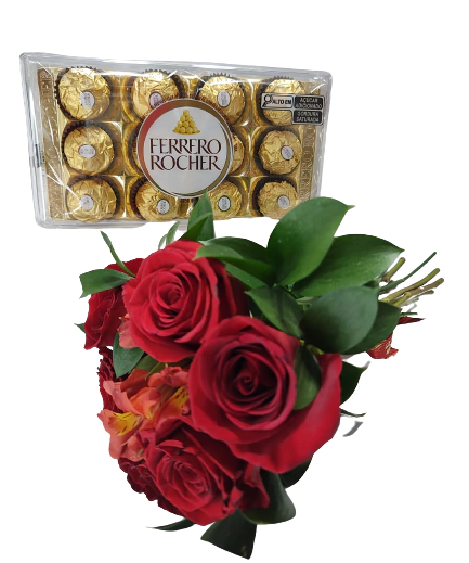 Kit especial com um lindo buquê de 6 rosas nacionais, cada uma simbolizando amor, paixão e beleza, acompanhado de uma irresistível caixa de chocolates Ferrero Rocher com 12 unidades. Uma combinação perfeita para encantar e adoçar qualquer momento!